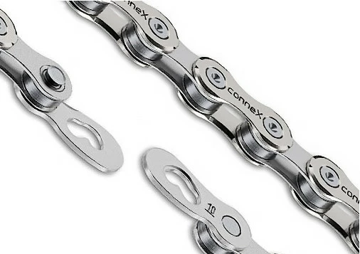 Mit dem Edelstahl Innenglied hält die Connex 10-fach Kette trotz der geringen Kettenbreite und einer Bolzenlänge von 5,9mm hohen Belastungen stand. Die Kette ist in verschiedenen Längen verfügbar und der Connex link Kettenverschluß ist im Lieferumfang enthalten.