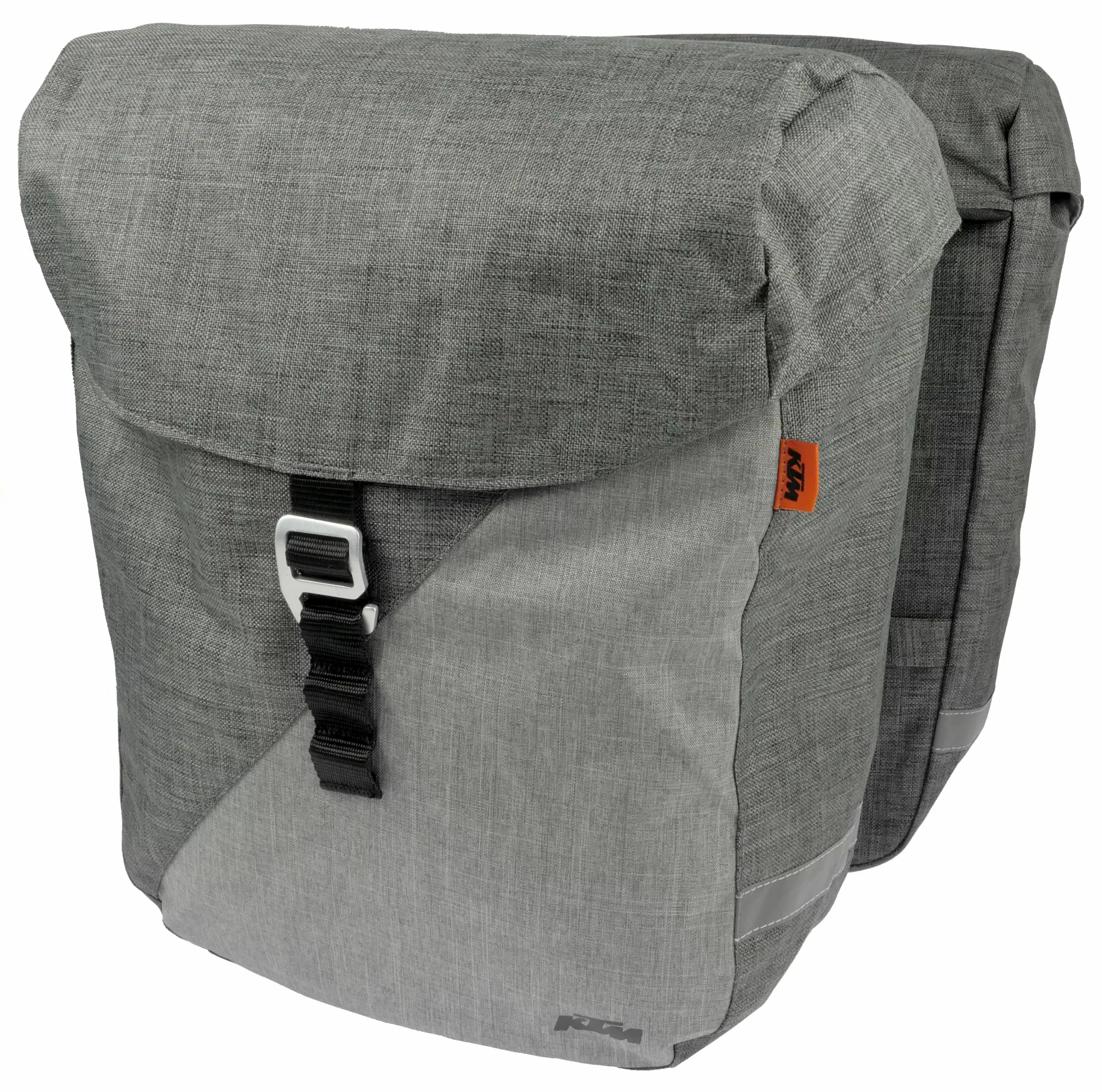 Die KTM Gepäckträgertasche Tour Doppeltasche kann dank des vormontierten Snap-It 1.0 Racktime Adapters mit nur einem Klick am Gepäckträger befestigt werden. Die Tour Doppeltasche bietet mit 24,5 Liter Fassungsvermögen enormen Stauraum für allerhand Gepäck. Somit eignet sich die KTM Gepäckträgertasche perfekt für Ausflüge oder Touren mit viel Gepäck. Die Taschen besitzen jeweils eine Reißverschluss Innentasche und werden von außen mit den Aluminiumhaken verschlossen.