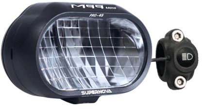 Die Supernova M99 Mini Pro 45 ist speziell für S-Pedelecs konzipiert und das kleinste sowie leistungsstärkste Frontlicht seiner Art. Mit satten 700 Lumen und 250 Lux, beschert ihnen die Supernova M99 Mini Pro 45 ein perfekt homogenes Abblendlicht, welches bestmögliche Sicherheit im Straßenverkehr garantiert. Zusätzlich bietet das Frontlicht ein 1400 Lumen und 280 Lux starkes Fernlicht nach ECE 113 Klasse C. Dank der Diamanten hochpolierten Spiegeloberfläche, reflektiert die überragende Lichtmenge von 10 automotive LEDs, damit ein über 300 m weit strahlendes Fernlicht erreicht wird.