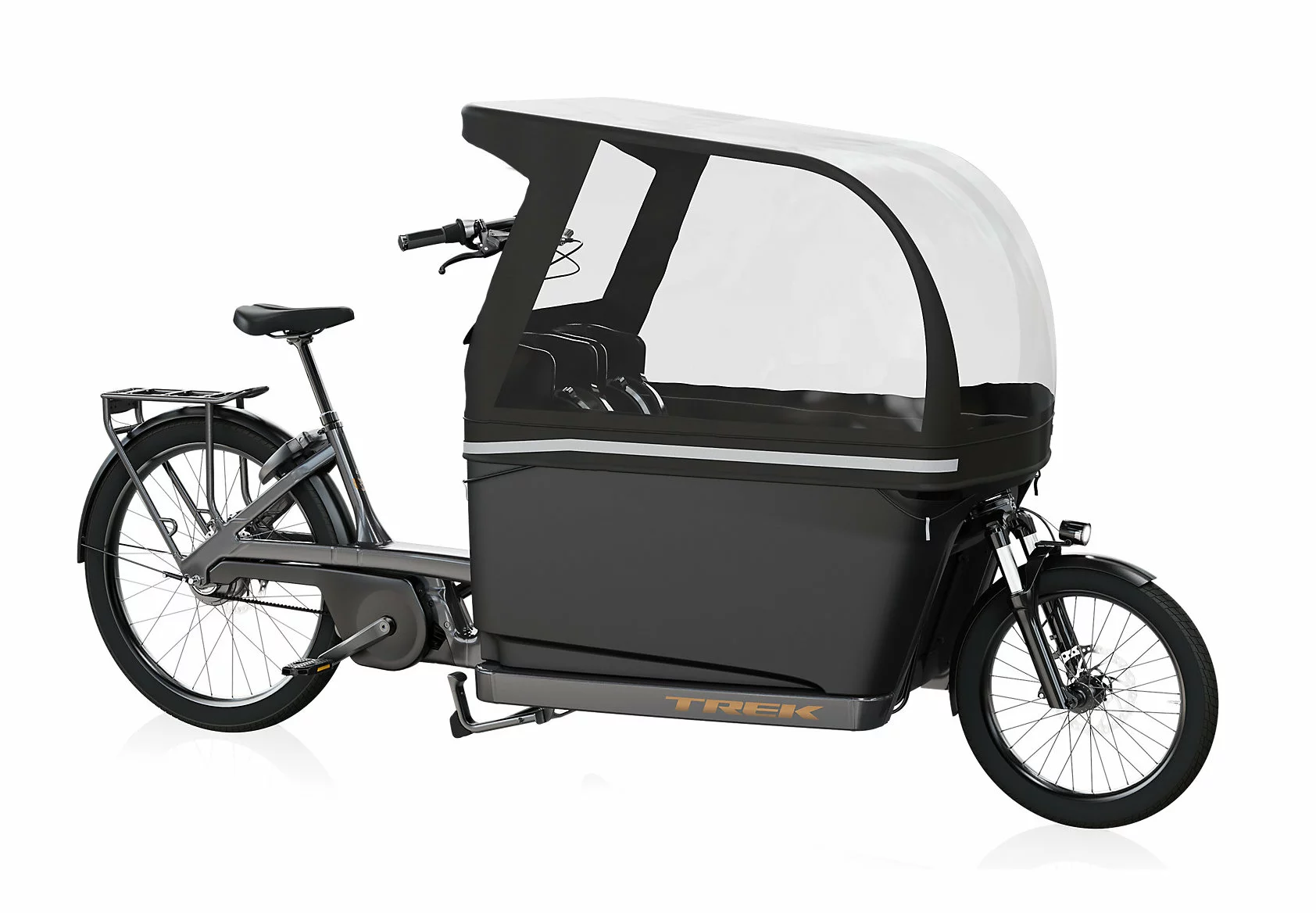 Auch wenn sich das Wetter von seiner weniger schönen Seite zeigt, müssen Sie nicht auf Ihr E-Cargo-Bike verzichten. Dieser komplett abdeckende Regenschutz lässt sich kinderleicht an Ihr Fetch+ 4 von Trek anbringen, damit Ihre wertvolle Fracht vor Umwelteinflüssen geschützt ist. Währenddessen sorgt eine große Belüftungsöffnung mit Reißverschluss für angenehme Kühle, sobald sich die Sonne raustraut.